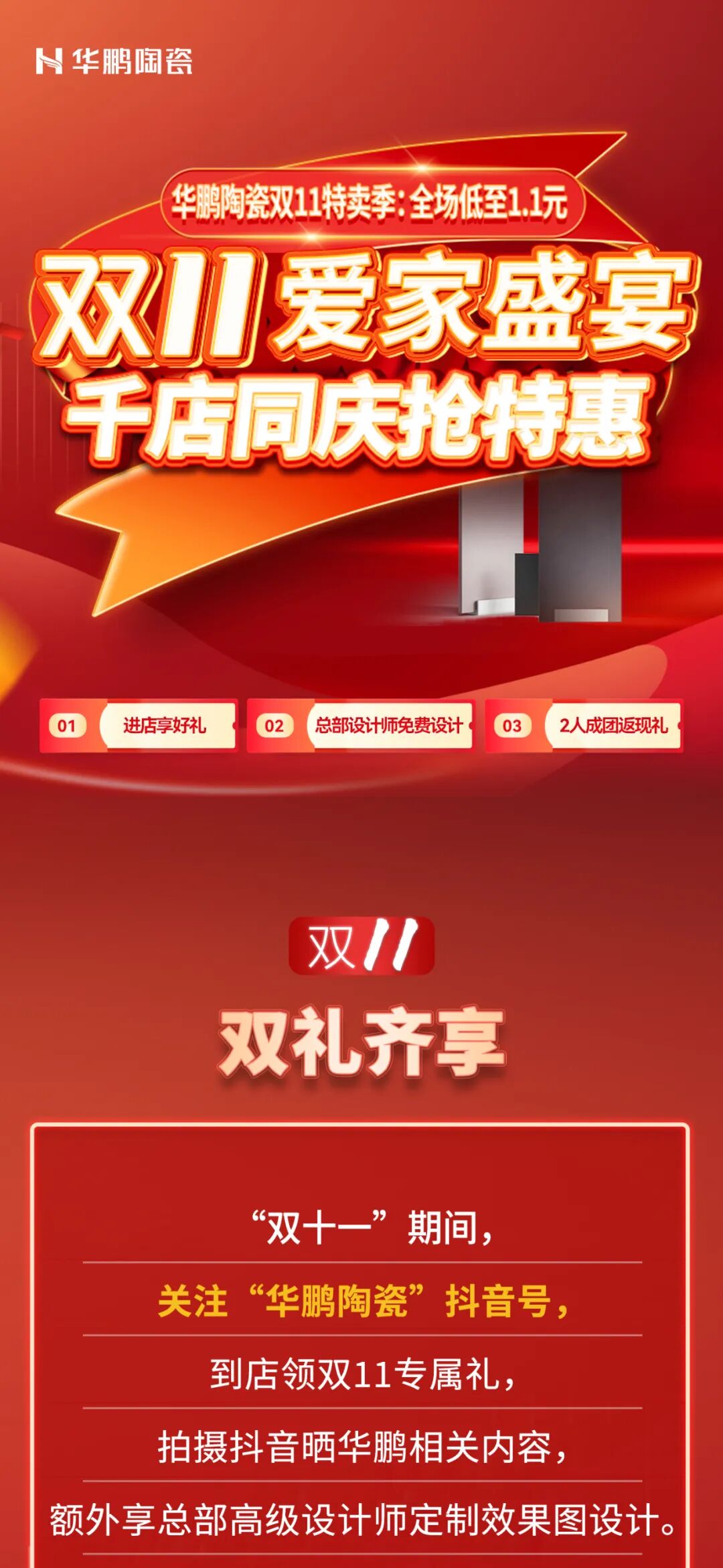 華鵬陶瓷雙11專屬特權已就位