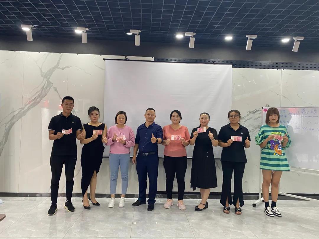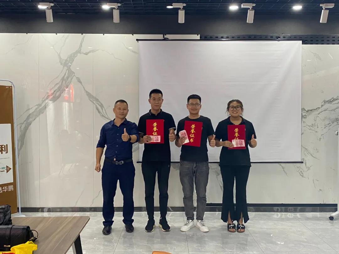 經過兩天的培訓學習,為檢驗學員學習成果。經過筆試+答辯,最終所有學員通過考核,順利畢業。區域經理鄧俊杰為學員們頒發了結業證書。其中,王者團隊被猛虎隊拿下,獲得大紅包獎勵,并評比出三位優秀學員,由山東華鵬陶瓷總經理侯福雷進行頒獎,寄語各位學員能夠學以致用,將陶瓷十大品牌華鵬服務理念帶給消費者,為門店提供優質、專業、貼心的服務。